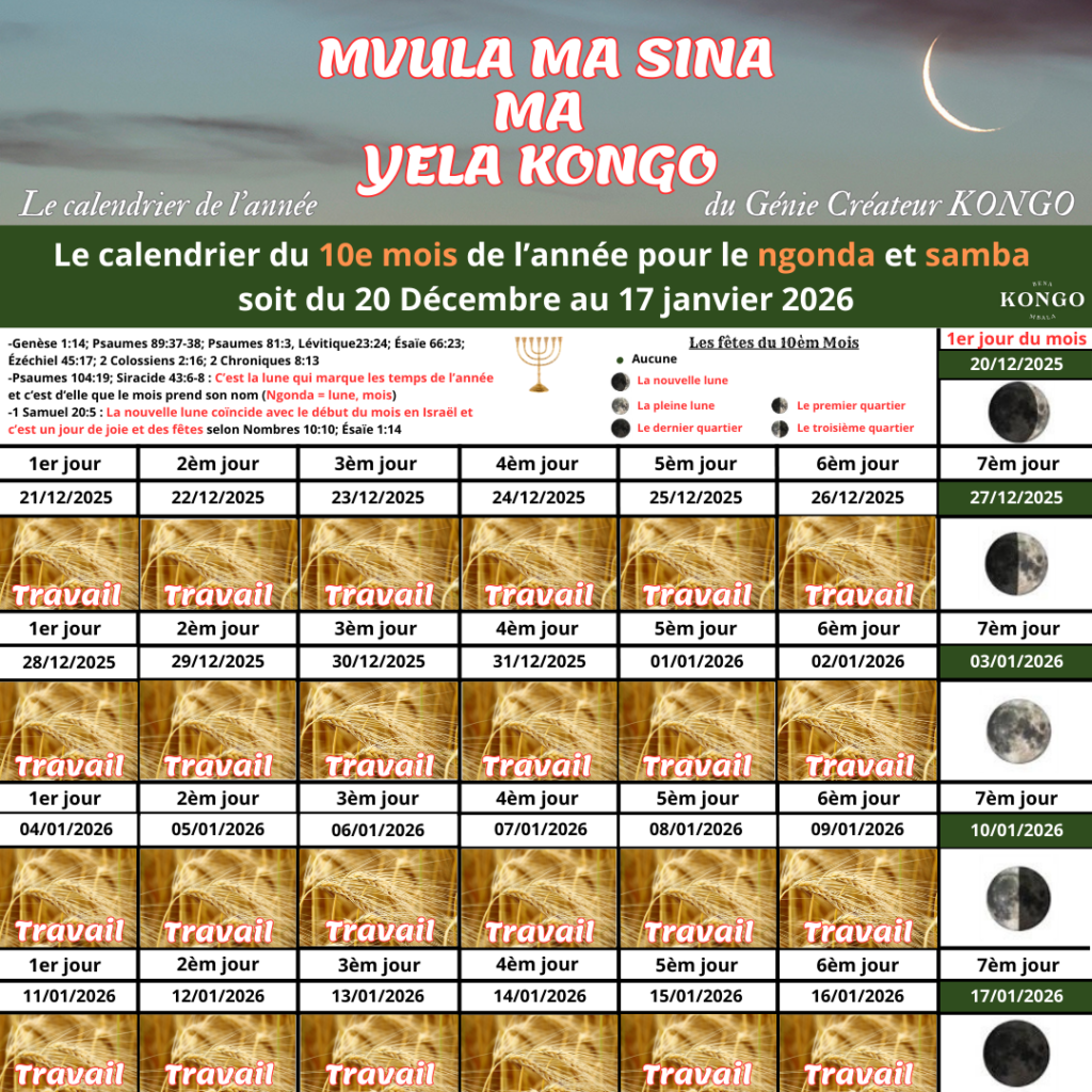 Le calendrier du 10e mois de l’année pour le samba (sabbat) et le ngonda