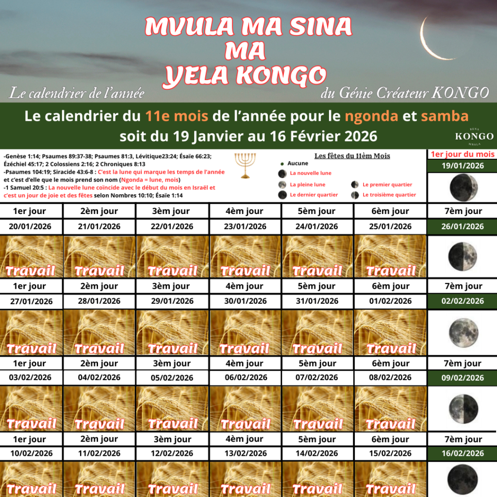 Le calendrier du 11e mois de l’année pour le samba (sabbat) et le ngonda