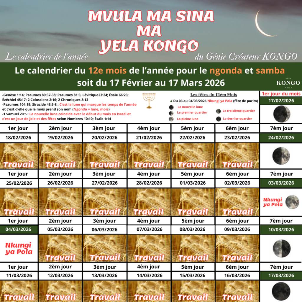 Le calendrier du 12e mois de l’année pour le samba (sabbat) et le ngonda
